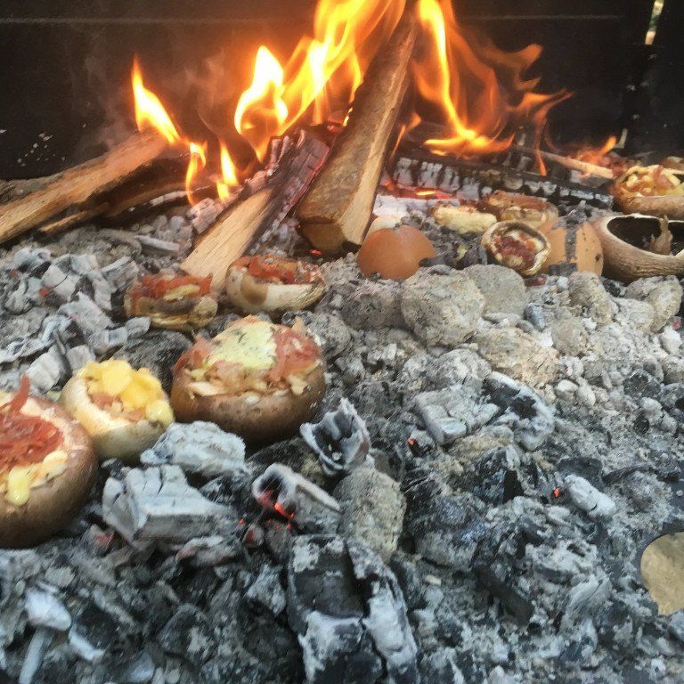 Wir bereiten u.A. Cowboybohnen, Bacon, Burger, Spiegeleier, Lagerfeuerkaffee, Stockbrot, Gemüse, Lagerfeuersandwiches, Krustenbraten, Schichtfleisch, Kuchen, Zimtschnecken, Rollbraten, Picanha, gefüllte Champignons, ganze Ananas, Gullasch, gefüllte Bananen, Popcorn, uvm. zu.